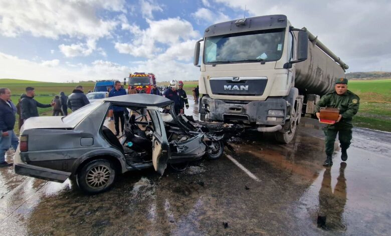 Deux personnes ont été tuées, aujourd’hui samedi, dans un tragique accident de la route après qu’un camion muni d’une remorque est entré en collision avec une voiture de tourisme au niveau de la route nationale n°18 dans la commune d’Ain Alaoui, affiliée à l’arrondissement d’Ain Bassam dans l’Etat de Bouira, selon un communiqué de la protection civile.