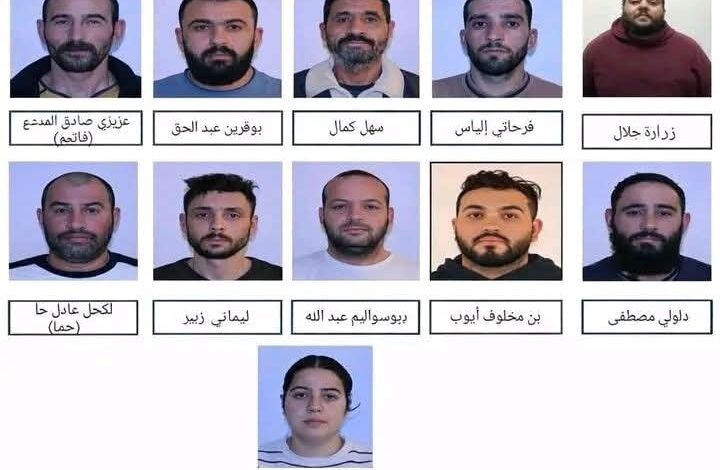Suite à l’enquête préliminaire menée par le Département de recherche et d’enquête de la Gendarmerie nationale à Sharqa, 11 personnes ont été arrêtées et arrêtées en flagrant délit. L’affaire concerne: le dénommé Buswalim Abdullah, 45 ans, Buqrin Abdul Haq, alias Osama, 39 ans, Farhati Lias, 29 ans, Azizi Sadiq, 39 ans, Mady Jamila, 31 ans, Sahl Kamal, 56 ans, Ben Makhlouf Ayoub, 22 ans, Limani Zuber, 37 ans, Daluli Mustafa, Âgés de 34 ans, Lakhal Adel, dit Al-Hami, âgé de 41 ans, et Zararda Jalal, surnommé Al-Washi, âgé de 31 ans, étaient en possession d’une quantité importante de substances psychotropes.