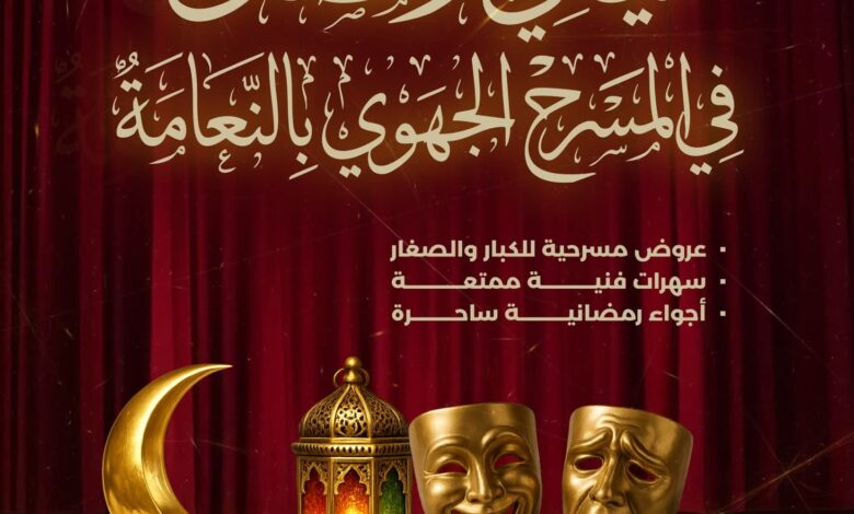 A l’occasion du mois sacré, le Théâtre régional Muhammed bin Qattaf de Naama organise une série de soirées artistiques et culturelles dans le cadre d’une programmation spéciale pour le Ramadan 2026, où les portes de la salle ouvrent quotidiennement à 21h30 après les prières de Tarawih pour recevoir le public dans une ambiance de Ramadan pleine de vitalité, de créativité et de spectacle haut de gamme, sous la supervision du ministère de la Culture et des Arts de la Wilayat de Naama.